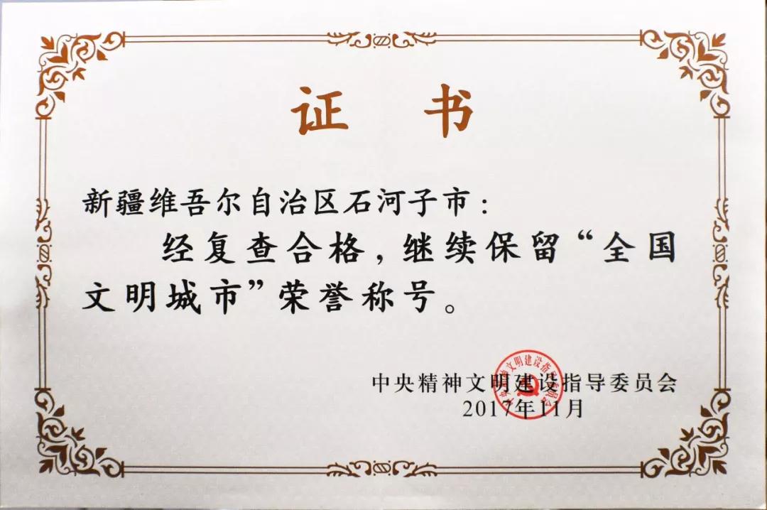 2017年9月,石河子市荣获“全国质量强市示范城市”的桂冠之后,又首次成功摘得“国家卫生城市”的奖牌,并蝉联了第五届“全国文明城市”的殊荣。至此石河子“四城联创”的目标全部实现,标志着我市的社会文明程度再上一个新台阶、广大市民的生活质量迈入了一个新的阶段、城市的综合发展水平提升了一个新层次。